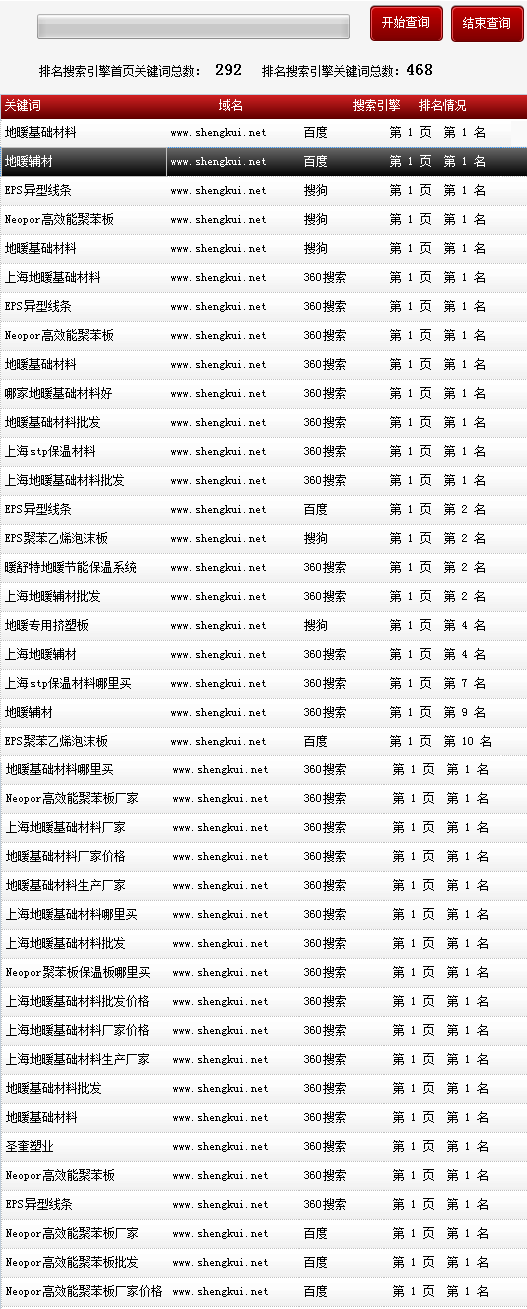 關鍵詞“地暖輔材”在百度排名:第1頁第1名